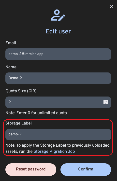 To apply a storage template, go to the Administration page -> click on the pencil button next to the user.